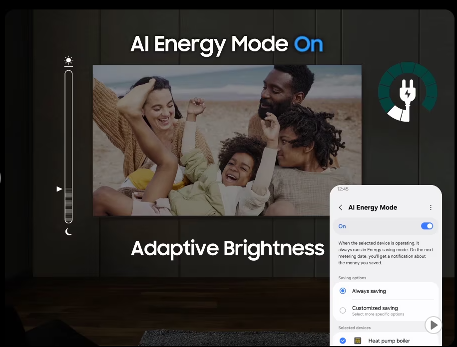 ♻ صرفهجویی هوشمند در مصرف انرژی AI Energy Mode با فعالسازی AI Energy Mode از طریق SmartThings، تلویزیون بهطور هوشمند میزان نور محیط و الگوهای استفاده شما را شناسایی کرده و روشنایی صفحه را بهینه میکند. این فناوری حتی صحنه به صحنه محتوای شما را تحلیل میکند تا هر جا که ممکن باشد، روشنایی را بهطور نامحسوس کاهش دهد؛ نتیجه: مصرف انرژی کمتر بدون کاهش کیفیت تجربه تماشا. | |