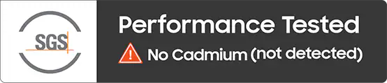 بدون کادمیم – تأیید شده توسط SGS ورقهای Quantum Dot استفادهشده در تلویزیونهای QLED سامسونگ، با رعایت کامل استانداردهای زیستمحیطی مطابق دستورالعمل RoHS ساخته شدهاند و توسط مؤسسه بینالمللی SGS تأیید شدهاند که هیچ اثری از کادمیم در آنها وجود ندارد. این لوگوی ویژه، نسخهای بازطراحیشده از نشان رسمی SGS برای اهداف بازاریابی است. | نمایشگر واقعی Quantum Dot – تأیید شده توسط TUV این تلویزیون با بهرهگیری از ورق Quantum Dot و نور پسزمینه LED آبی، مطابق با استانداردهای بینالمللی IEC ساخته شده است. کیفیت رنگ و دقت نمایش آن توسط مؤسسه معتبر TUV به عنوان نمایشگر واقعی Quantum Dot گواهی شده است. |