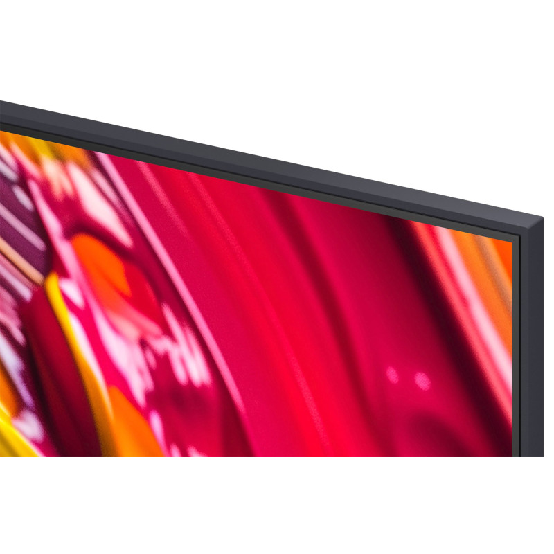 طراحی دستگاه باریک و مینیمال بوده و حاشیههای ظریف، جلوهای لوکس ایجاد میکند. با وزن تقریبی ۲۳ کیلوگرم (با پایه) و امکان نصب دیواری VESA 300×200، برای فضاهای مدرن مناسب است. درگاههای کامل شامل ۳ HDMI (پشتیبانی ALLM/eARC)، یک USB، Wi-Fi 5، اترنت، خروجی اپتیکال و بلوتوث ۵.۰، انعطاف بالایی در اتصال فراهم میکند.