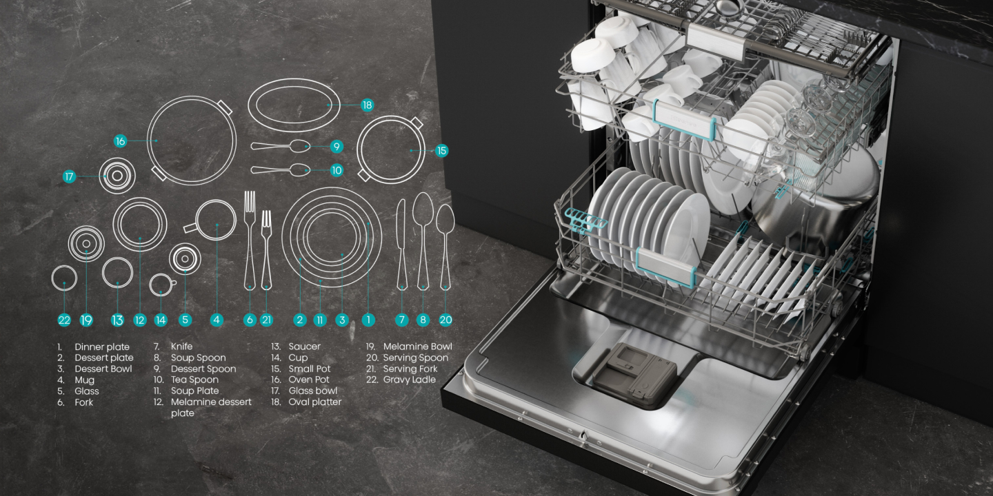 ظرفیت 16 نفره این دستگاه آن را به گزینهای مناسب برای خانوادههای پرجمعیت تبدیل کرده است. این میزان ظرفیت امکان شستشوی حدود 170 تکه ظرف را در هر بار شستشو فراهم میکند. وجود سبد کارد و چنگال متحرک نیز باعث انعطافپذیری بیشتر در قرار دادن ظروف متنوع میشود.